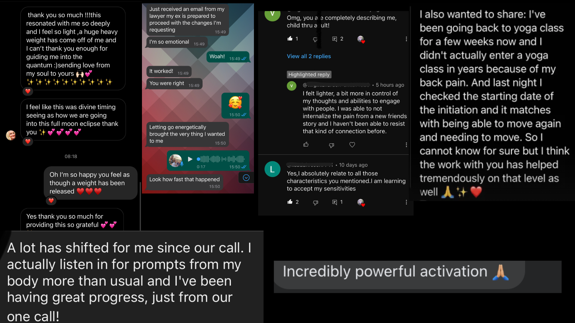 "Maria you are a radiant, abundant, goddess! You've lit something inside of me again. The amount of downloads I got working with you was amazing.  I think everyone needs to know about this work it’s just so interesting and explains a lot - just wow. Thank you so much for always giving so much and just being you and bringing in these beautiful codes and information - oh my god - I'm so excited, I feel so happy - you really made me connect to my soul purpose and my soul self.