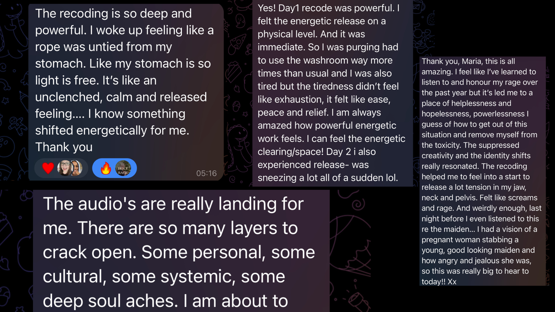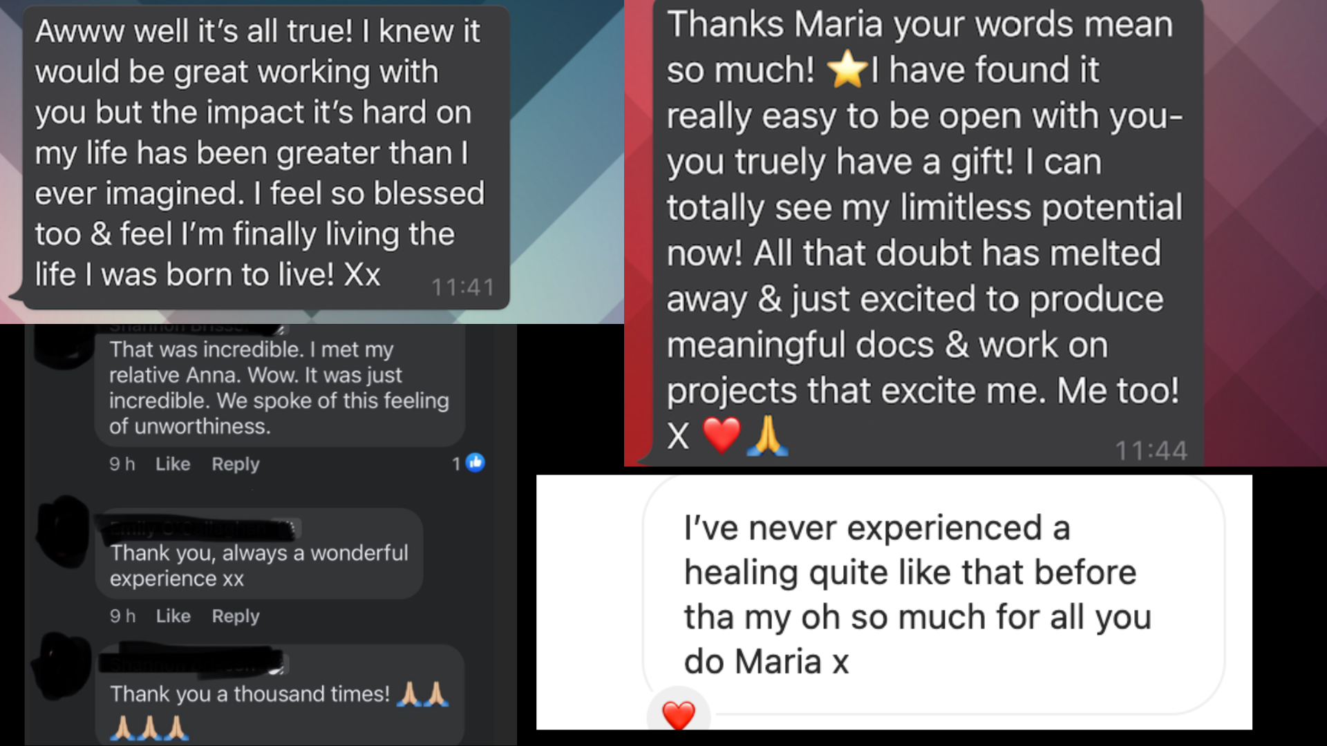 "I can't recommend Maria enough. Hand on heart it's the most enlightening and healing thing I have ever done.
